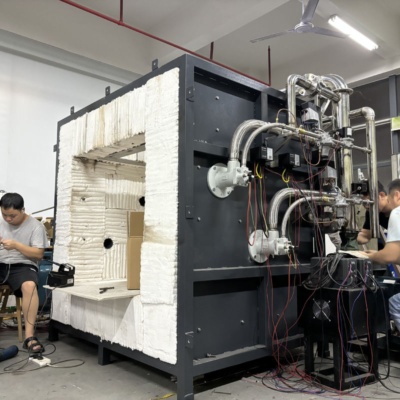 3बर्नर:60-80 किलोवाट की शक्ति वाले उच्च दबाव वाले बर्नरों के दो सेटों का उपयोग किया जाता है, जिनमें हवा-ईंधन अनुपात नियंत्रण और बंद-लूप नियंत्रण होते हैं जो भट्ठी के अंदर तापमान प्रतिक्रिया द्वारा गठित होते हैं।गैस वाल्व और हवा वाल्व स्वचालित रूप से सबसे अच्छा दहन प्रभाव प्राप्त करने के लिए समायोजित किया जा सकता हैसुरक्षा सुनिश्चित करने के लिए, बर्नर चयन और घटक सभी प्रसिद्ध ब्रांडों से हैं।